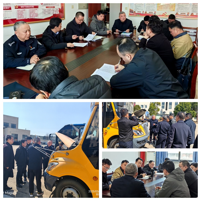 為深刻汲取淮南“2·27”校車事故慘痛教訓(xùn),消除安全隱患,2025年3月17日上午,安慶市校車聯(lián)席會議安全檢查組一行四人到童安校車服務(wù)分公司開展督導(dǎo)檢查,桐城市教育局局長疏波、桐城市教育局黨委委員吳瀾、桐城市交警大隊副大隊長汪夕亮,桐城市道路運(yùn)輸管理中心副主任汪郁陪同檢查。